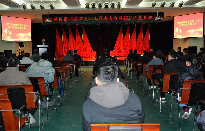 2022年1 月28日,河冶科技四屆四次職工代表大會(huì)暨2021年度表彰大會(huì)在多功能廳隆重召開(kāi)。公司黨委書(shū)記、董事長(zhǎng)楊文義,總經(jīng)理米永旺及黨委委員、助理以上領(lǐng)導(dǎo)、全體中層干部、職工代表、采購(gòu)營(yíng)銷人員、部門骨干、列席代表等出席了會(huì)議,安泰科技總經(jīng)理畢林生、紀(jì)委書(shū)記劉建欣通過(guò)視頻全程參加會(huì)議。