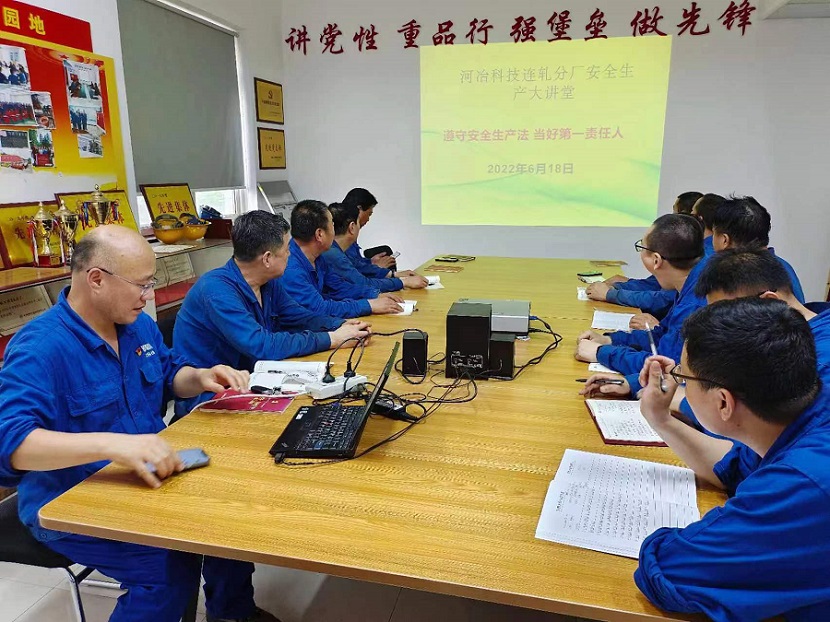 下一步,河冶科技將繼續以“安全生產月”活動為抓手,開展預防工傷安全知識技能培訓、“兩個專題”和“七個專項領域”成果,檢查遺留問題(風險隱患)清單梳理情況等主題活動,進一步落實安全生產責任,當好第一責任人。