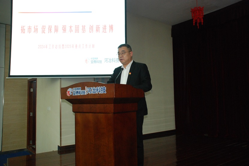 2025年1月8日,河冶科技召開2025年度工作會議。此次會議匯聚了公司發展的中堅力量,公司黨政領導班子全員到會,中層副職及以上、管理骨干、雙航人才,以及采購、營銷等相關人員、河冶工模具經理班子成員參會,會議由常務副總經理梁敬斌主持。